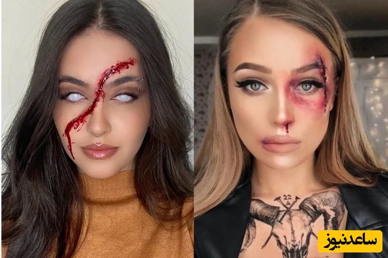 در این مدل کافی است روی بخشی از صورت و حتی دست خود، طرحی شبیه به زخم واقعی طراحی کنید. کافی است با مداد یا رژ قرمز یک خط قرمز بکشید و کنارههای آن را با سایه قهوهای محو کنید تا شبیه بریدگی شود. میتوانید قطرات خون هم با استفاده از تینت قرمز به آن اضافه کنید. هرچه زخم بازتر و خون آلودتر به نظر برسد، برای هالووین جالبتر است. ایجاد آثار کبودی با کمک سایه بنفش و قهوهای گریم هالووین ساده شما را جذابتر میکند.