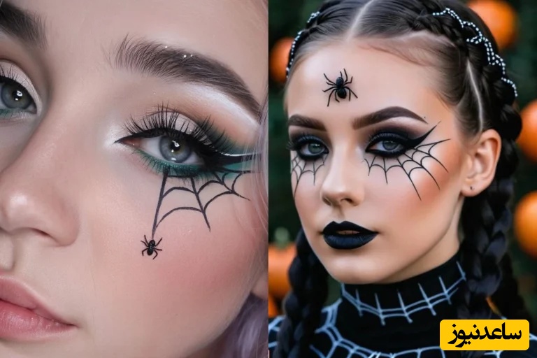 نیاز نیست تار عنکبوت صورت شما را بپوشاند یا یک عنکبوت برجسته بزرگ طراحی کنید. کافی است با خط چشم مشکی یا آکوا مشکی روی پلک یا اطراف چشم چند تار نازک بکشید و در مرکز یکی از آنها یک عنکبوت کوچک با نقطه سیاه درست کنید. این روش خیلی ساده و در عین حال خیلی راحت و چشمگیر است.