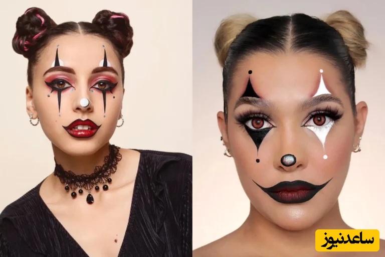 یکی دیگر از میکاپهای ساده، میکاپ دلقک است. با خط چشم و رژ قرمز فقط روی چشم، بینی و لب خطوط منحنی بکشید، این روش نیازی به گریم کامل ندارد و همین گریم، ظاهری جالب و ترسناک به استایل شما میدهد.