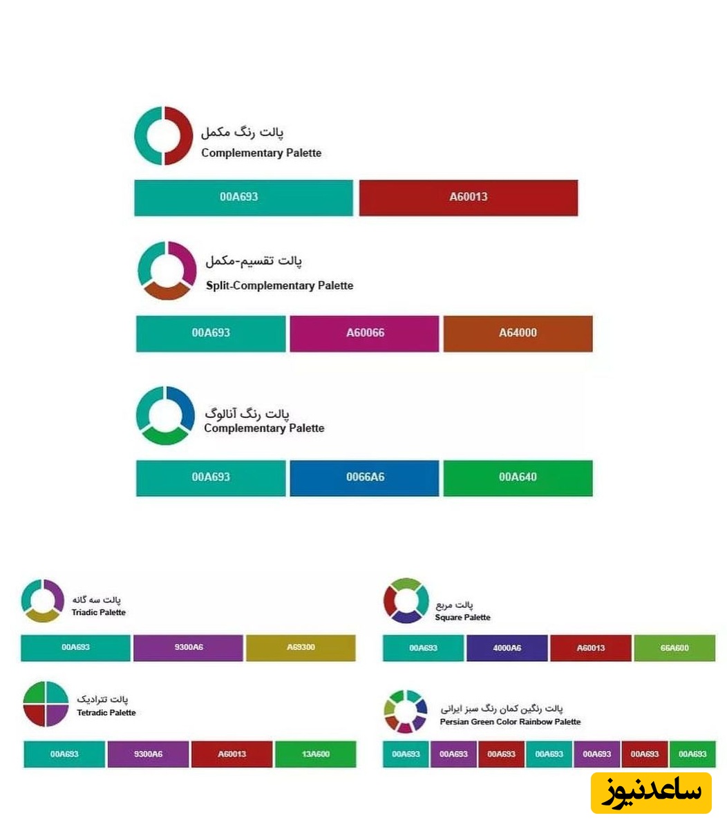 علاوه بر این کارگروه ساماندهی مد و لباس، پالت رنگی سهگانه، مربع و رنگهای مکمل را معرفی کرده است که از این پالتها هم میتوان ایده گرفت.