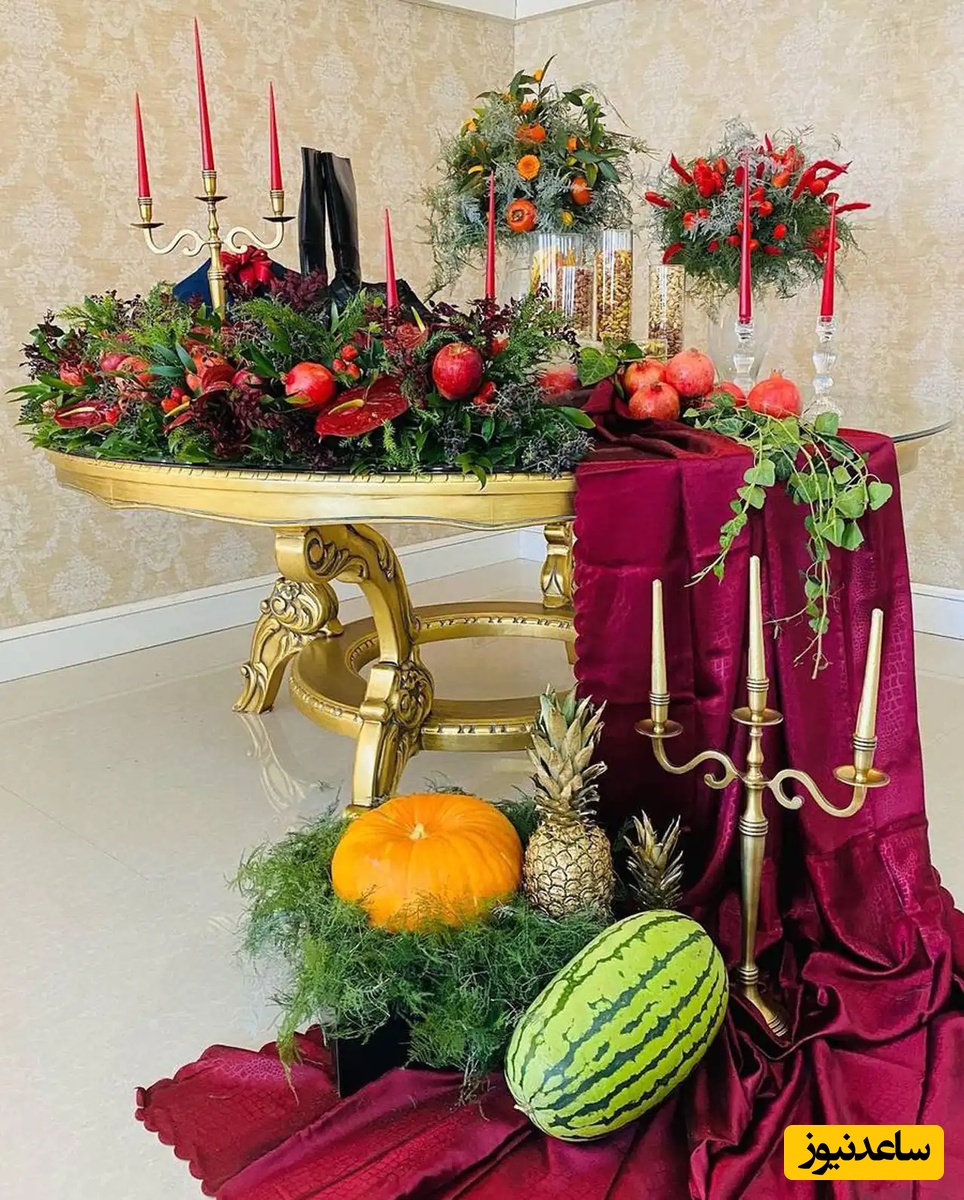 هندوانه و انار به عنوان دو نماد اصلی یلدا، به شیوهای خلاقانه و هنری ارائه میشوند. هندوانه دیگر به صورت ساده برش داده نمیشود؛ بلکه به صورت کندهکاری شده به شکل سبد، گل یا حروف درمیآید یا به شکل مکعبهای کوچک و منظم برای سرو آسان آماده میشود. انار نیز به جای چیدن کامل، دان شده و در ظروف شیشهای شفاف (مانانجامیا جامهای بلند) یا در کنار آجیل سرو میشود تا درخشش رنگ قرمز آن در کنار شفافیت شیشه، جلوهای خیرهکننده ایجاد نماید و بر زیبایی رنگهای یلدایی تأکید کند.