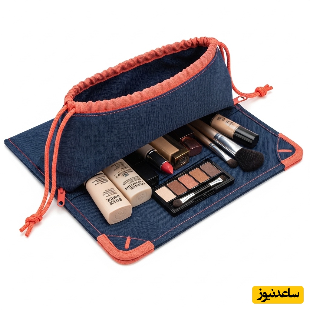 سادگی گاهی بهترین راهحل است و کیفهای آرایشی مدل کیسهای یا بندی (Drawstring) مصداق بارز این جمله هستند. این کیفها که با الهام از کیسههای سنتی طراحی شدهاند، کاربری فوقالعاده راحتی دارند. کافی است بند آنها را باز کنید تا کیف به صورت یک صفحهی صاف درآید و تمام لوازم آرایش شما در یک نگاه قابل مشاهده باشد. این طراحی منحصربهفرد شما را از جستجو و به هم ریختن وسایل برای پیدا کردن یک وسیله کوچک بینیاز میکند. پس از اتمام کار، تنها با کشیدن بندها، کیف دوباره جمع شده و تمام وسایل را به سرعت در بر میگیرد.