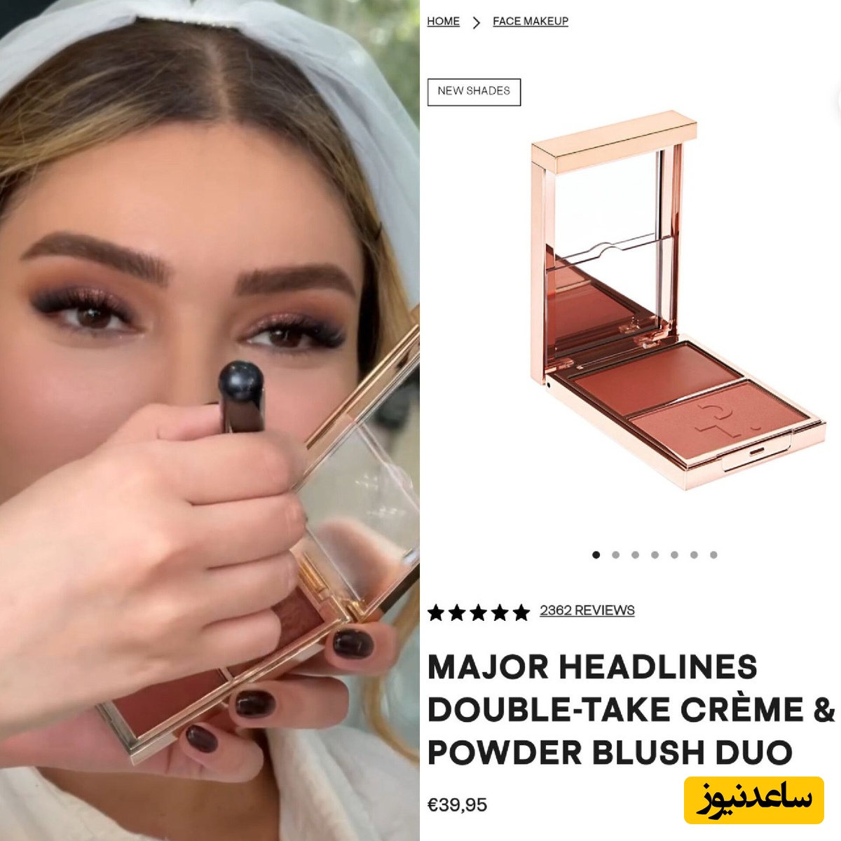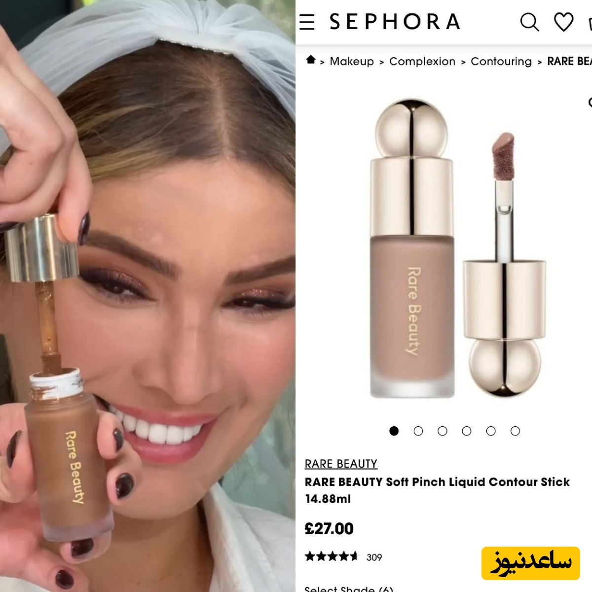 برای تکمیل کانتورینگ، از کانتور برند «رِر بیوتی» نیز بهره گرفته شد. قیمت این محصول نیز در حدود 4 میلیون تومان است. ترکیب این دو محصول، تعادل رنگی مناسبی ایجاد کرد و به صورت متین، بُعد و عمق بیشتری بخشید. نتیجه، ظاهری حرفهای و کاملاً هماهنگ بود که به زیبایی در قاب دوربین نشست.