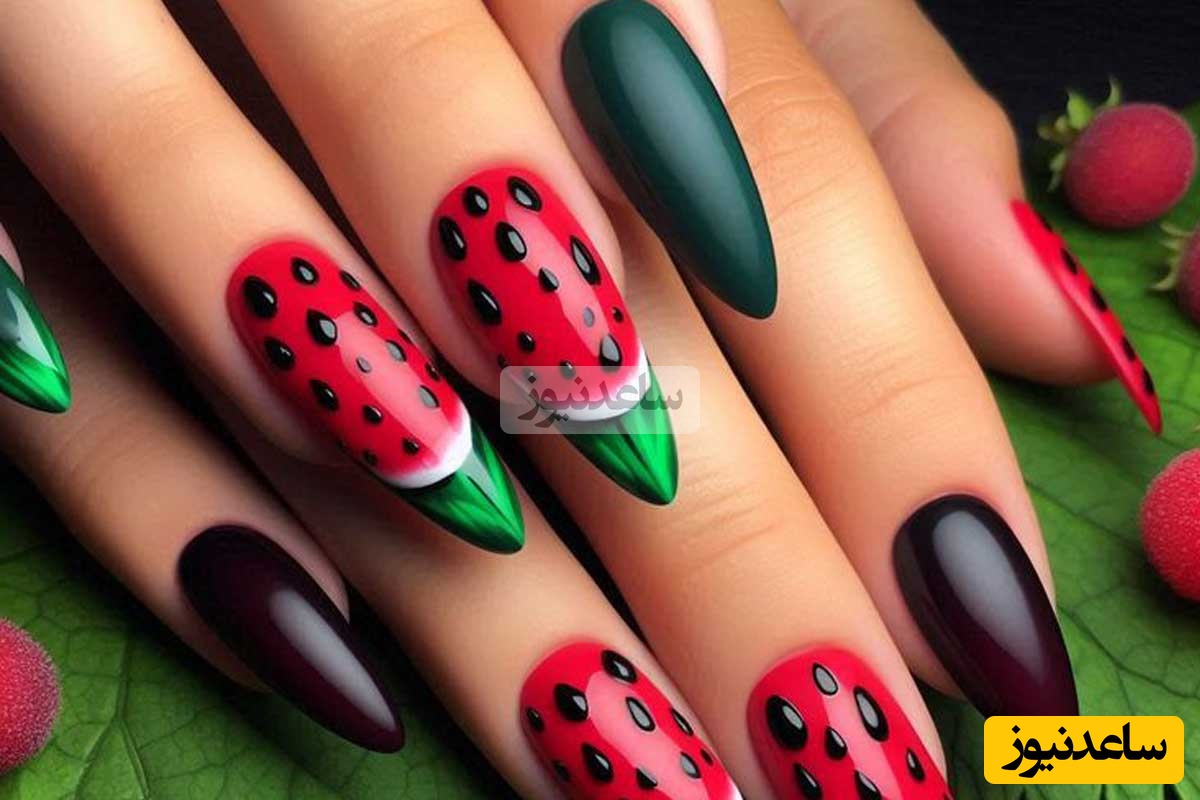 استفاده از لاک با رنگهای سبز، قرمز، و سفید برای طراحی ناخنهایی با الگوی پوست و دانههای هندوانه، میتواند بسیار زیبا و نمادین باشد. این طرحها معمولاً ساده و در عین حال چشمگیر هستند.
