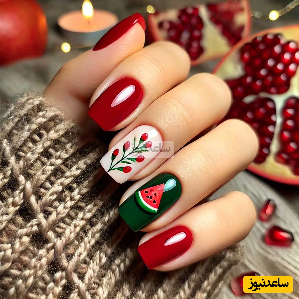 شب یلدا یکی از زیباترین و خاطرهانگیزترین جشنهای ایرانی بخصوص عروس ها است که با نمادهایی مثل هندوانه، انار، برف، و رنگهای گرم و زمستانی شناخته میشود. اگر میخواهید در این شب خاص، استایلی منحصربهفرد داشته باشید، طراحی ناخن با تم یلدایی میتواند انتخابی جذاب باشد. در ادامه چند ایده برای طراحی ناخن یلدایی را به شما پیشنهاد میدهیم: