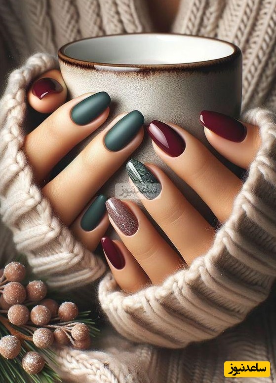اگر طرفدار طراحیهای ساده هستید، استفاده از رنگهای قرمز، سبز، سفید، و طلایی به صورت ساده یا ترکیبی روی ناخنها، حس و حال یلدایی را به استایل شما اضافه میکند.