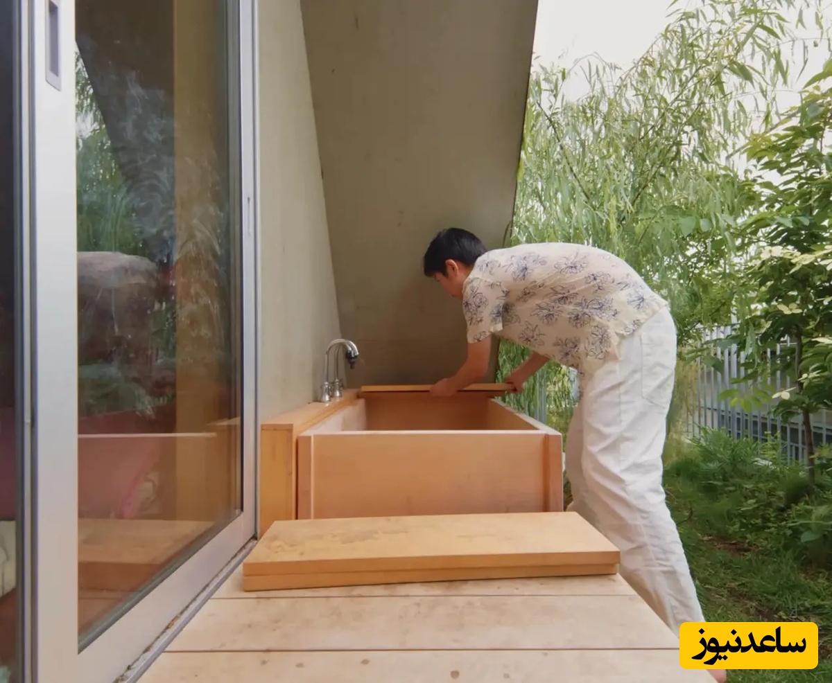 وان چوبی بیرونی الهامگرفته از حمامهای سنتی ژاپنی