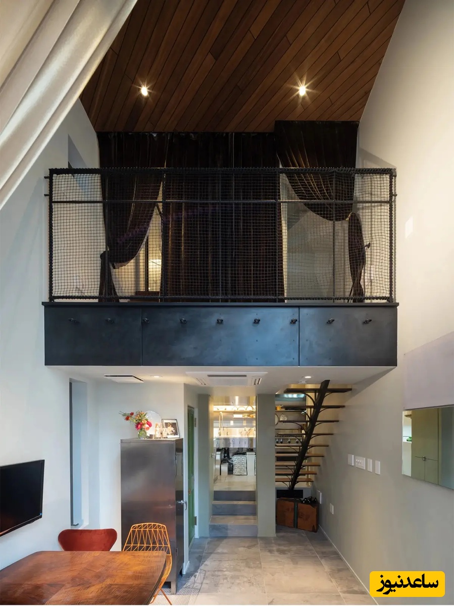 گوشه مطالعه کنار نورگیر سقفی با دسترسی از طریق نردبان