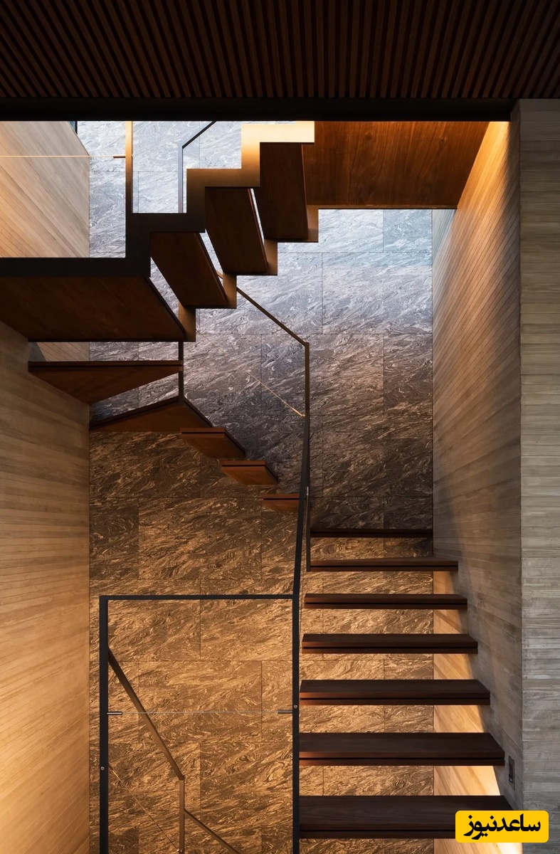 ناگهان، بتن سخت جای خود را به چوب های گرم و فضاهایی با طراحی دقیق می دهد که بیشتر شبیه به یک خلوتگاه لوکس است تا یک خانه شهری. این چرخش 180 درجه ای از آنچه از نمای بیرونی انتظار می رود، واقعا خیره کننده است. جایی که بیرون فریاد «وارد نشوید» سر می دهد، فضای داخلی نجوا می کند «کمی بمانید». نور طبیعی از طریق دریچه های راهبردی و حیاط های مخفی به داخل سرازیر می شود و فضای 214 متر مربعی (و 106 متر زیرزمین) را بسیار بزرگ تر از آنچه هست نشان می دهد.