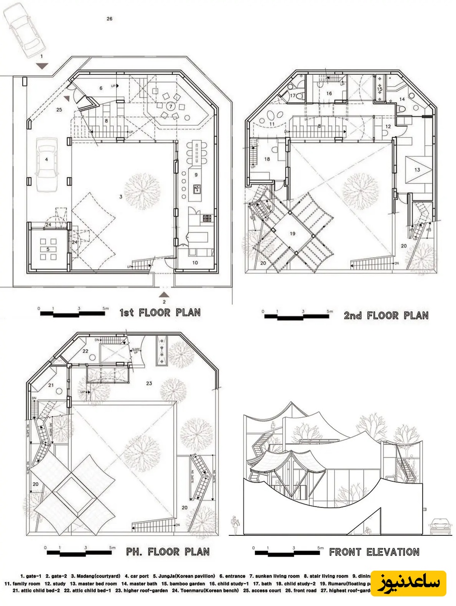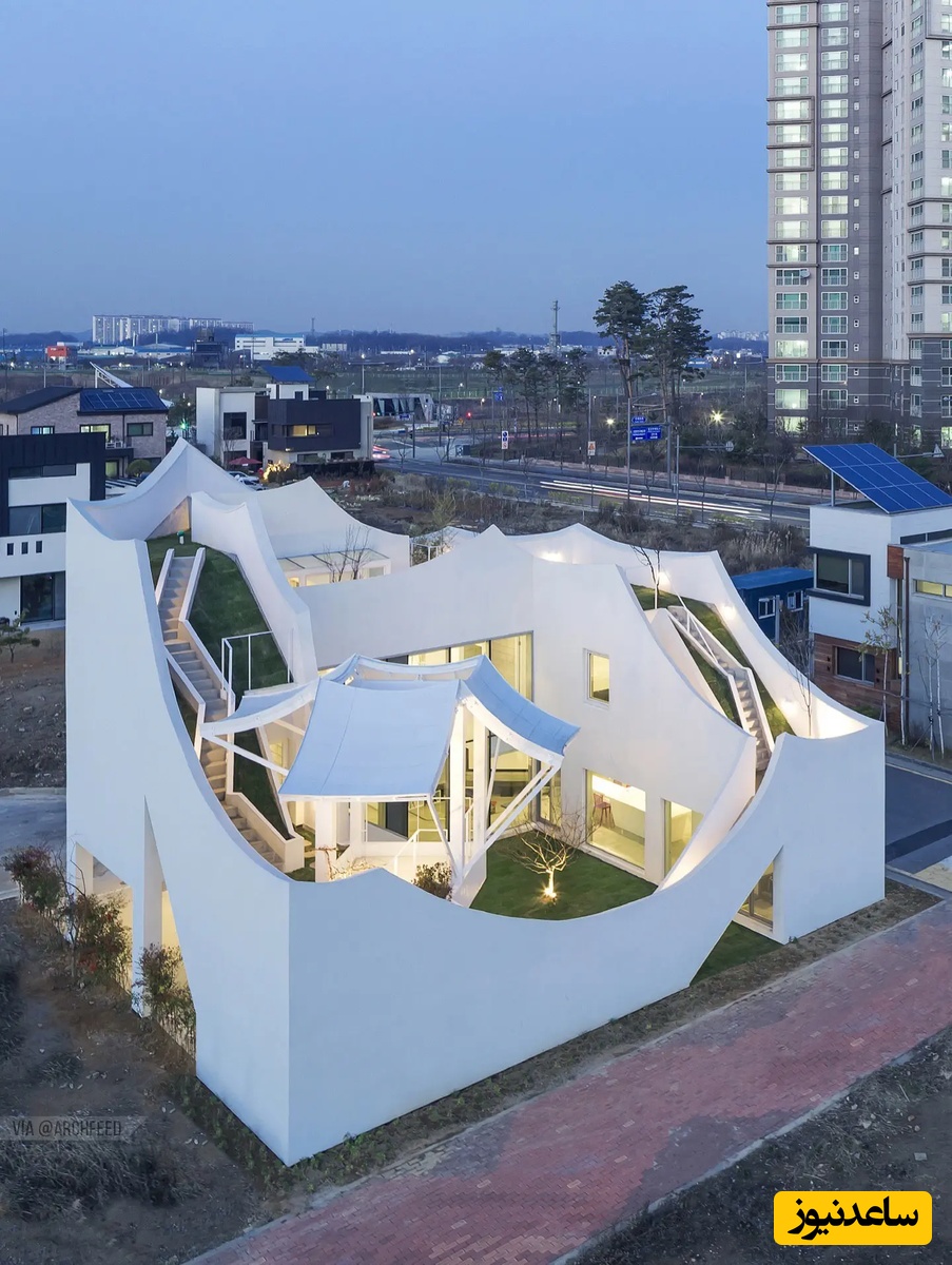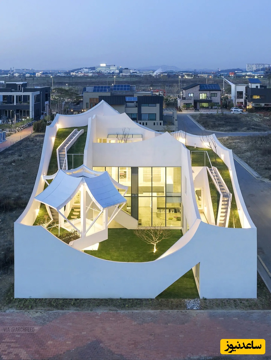 به گزارش سرویس دکوراسیون ساعدنیوز، دفتر معماری IROJE KHM از پروژه منحصربهفرد خود با نام «خانه پرنده» رونمایی کرد. این اثر که برای یک خلبان جوان و خانوادهاش در شهر جدیدی نزدیک به فرودگاه بینالمللی اینچئون طراحی شده، گویی یک کشتی هوایی است که به آرامی بر زمین نشسته و باری از طبیعت را با خود به همراه آورده است.