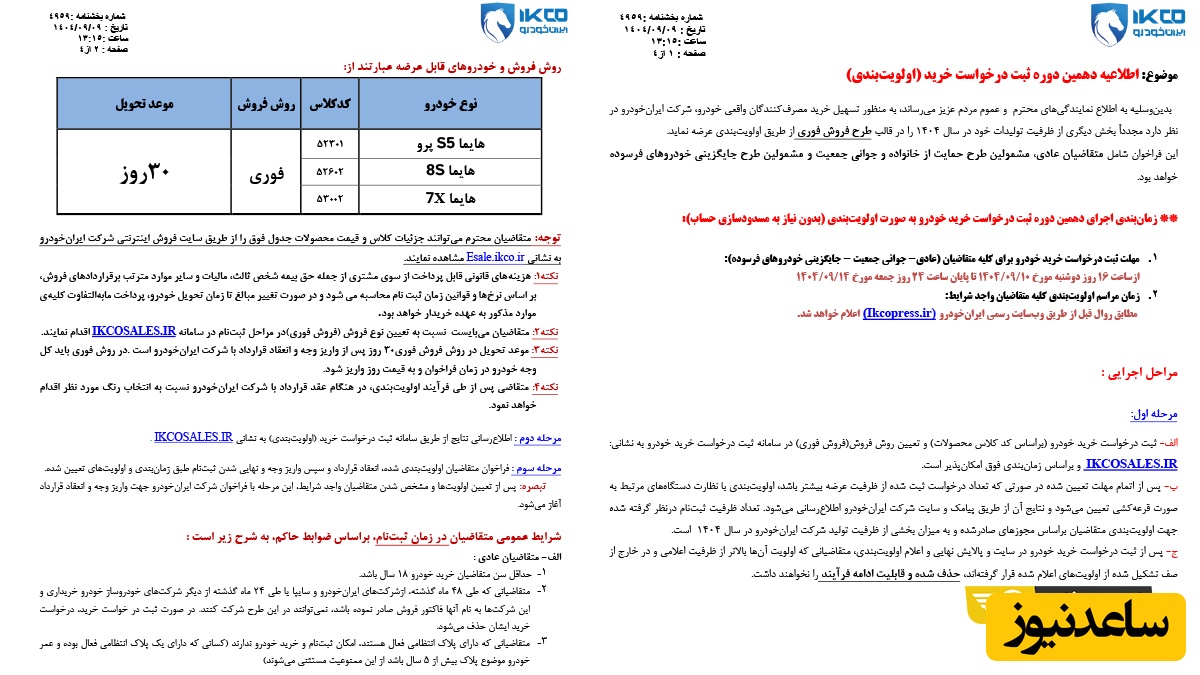 در این دوره، محصولات خانواده هایما شامل هایما S5 پرو، هایما 7X و هایما 8S قابل عرضه هستند. متقاضیان میتوانند در بازه زمانی اعلامشده با مراجعه به سامانه فروش اینترنتی ایرانخودرو به نشانی ikcosales.ir نسبت به ثبتنام و شرکت در فرآیند اولویتبندی اقدام کنند.