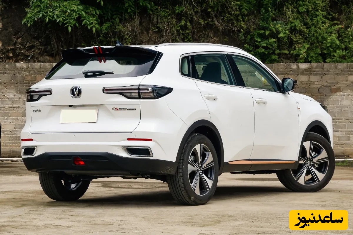 به لطف رینگهای 19 اینچ و شیب ملایم سقف که در انتها با بالچه همرنگ بدنه میرسد، حس اسپرت چانگان cs55 پلاس تقویت شده است. تزینات کروم در قاب پنجرهها و رکاب وجود دارند، اما آینه بغل سیاه و ریل باربند، نقرهای رنگ هستند. خطوط برجسته، از چراغهای جلو و عقب به سمت درها کشیدهاند؛ همچنین در محل رکابهای و سقف، حجمدهی چشمنواز دیده میشود.