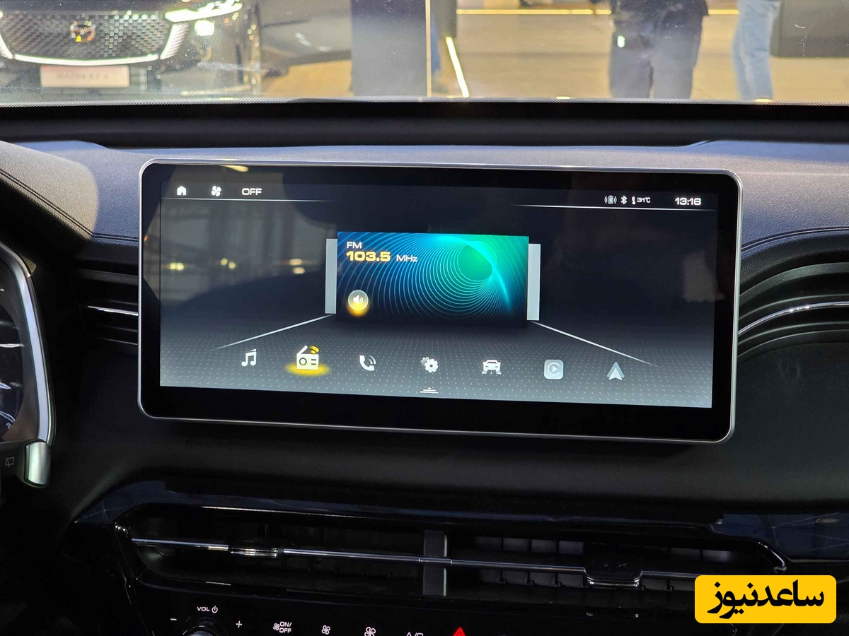 دیگر امکانات: نمایشگر لمسی بزرگ، سیستم چندرسانهای با بلوتوث و USB، صندلیهای برقی و گرمکن، تهویه مطبوع اتوماتیک دو ناحیهای، کروز کنترل، شارژر بیسیم، سقف پانوراما، نورپردازی داخلی LED، دوربین عقب، سنسور پارک جلو و عقب، هشدار خروج از خط، هشدار برخورد جلو، کنترل فشار باد تایر (TPMS) و کیسههای هوا جلو، جانبی و پردهای