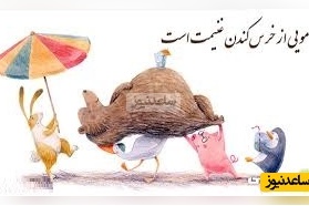 جوان رو کرد به بز و شتر. صداهای عجیب و غریبی از خودش در آورد و بعد گوشش را برد جلو دهان بز و شتر و طوری وانمود کرد که دارد جوابشان را میشنود و میگوید: «قربان! بزرگ و ریشسفید شهر ما میگویند که نه شما ظالمید نه خدا، ما خودمان ظالمیم که این بلاها سرمان میآید. میگویند از ماست که بر ماست. اگر ما عقلمان را به پرواز یک باز شکاری نمیسپردیم و با مشورت و فکر شاه انتخاب میکردیم، حالا اسیر اینچنین بدبختی و حال و روزی نبودیم.»