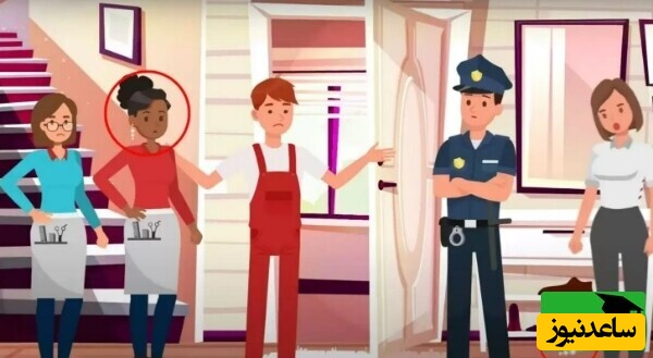 جوابت اینجاست: خوب دقت کنید. به احتمال زیاد خانمی که لباس قرمز پوشیده، دزد است. به گوشه پایین سمت راست نگاه کنید، میتوانید گوشواره را در آنجا ببینید. لنگه دیگر این گوشواره در گوش این خانم قرمز پوش است و این نشان میدهد که او در داخل خانه بوده است. بنابراین، به احتمال زیاد او فردی است که از این خانه دزدی کرده است و جواب معمای ما این زن قرمز پوش است.