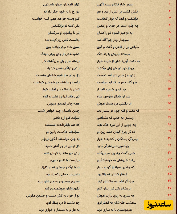 به گزارش سرویس فرهنگ و هنر سرویس ساعدنیوز، یکی از بزرگترین حماسههای منظوم جهان، کتاب شاهنامه فردوسی، اثر ابوالقاسم فردوسی است. این اثر شامل حدود 50,000 تا 61,000 بیت است و به اساطیر، حماسهها و تاریخ ایران از آغاز، تا حملهی اعراب میپردازد. شاهنامه در سه بخش اسطورهای، پهلوانی و تاریخی نگاشته شده و تأثیر عمیقی بر فرهنگ و ادبیات کهن فارسی داشته است. این کتاب به بسیاری از زبانهای زندهی جهان نیز ترجمه شده است.