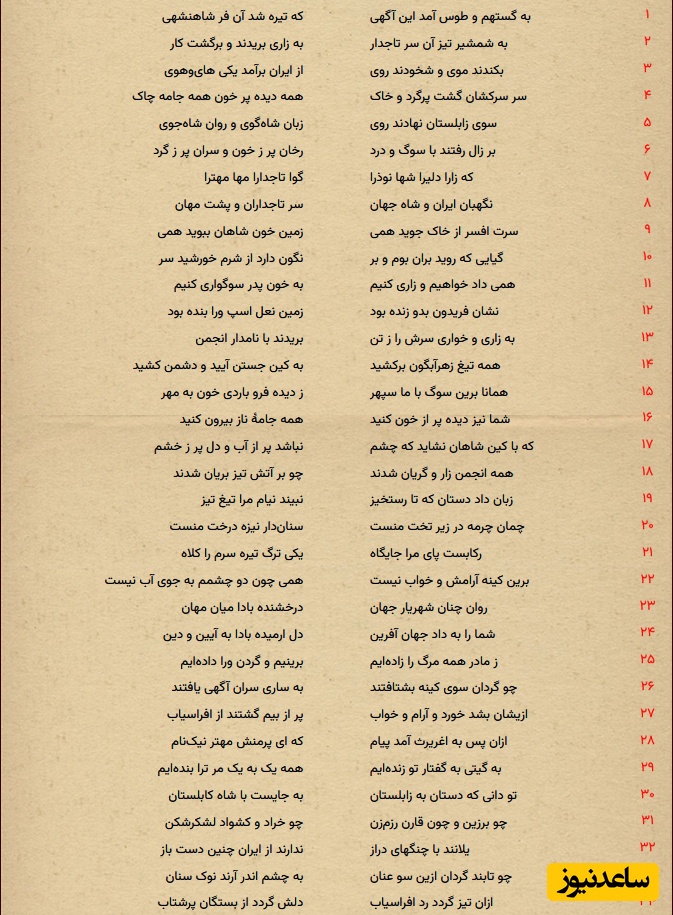 به گزارش سرویس فرهنگ و هنر سرویس ساعدنیوز، یکی از بزرگترین حماسههای منظوم جهان، کتاب شاهنامه فردوسی، اثر ابوالقاسم فردوسی است. این اثر شامل حدود 50,000 تا 61,000 بیت است و به اساطیر، حماسهها و تاریخ ایران از آغاز، تا حملهی اعراب میپردازد. شاهنامه در سه بخش اسطورهای، پهلوانی و تاریخی نگاشته شده و تأثیر عمیقی بر فرهنگ و ادبیات کهن فارسی داشته است. این کتاب به بسیاری از زبانهای زندهی جهان نیز ترجمه شده است.
