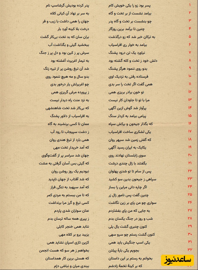 به گزارش سرویس فرهنگ و هنر سرویس ساعدنیوز، یکی از بزرگترین حماسههای منظوم جهان، کتاب شاهنامه فردوسی، اثر ابوالقاسم فردوسی است. این اثر شامل حدود 50,000 تا 61,000 بیت است و به اساطیر، حماسهها و تاریخ ایران از آغاز، تا حملهی اعراب میپردازد. شاهنامه در سه بخش اسطورهای، پهلوانی و تاریخی نگاشته شده و تأثیر عمیقی بر فرهنگ و ادبیات کهن فارسی داشته است. این کتاب به بسیاری از زبانهای زندهی جهان نیز ترجمه شده است.