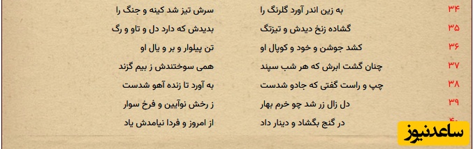 هوش مصنوعی: دل زال به مانند زری درخشان شد، همانطور که بهار خرم و شاداب میشود، به دلیل چهرهای نو و خوشبخت که بر سوار زیبایش تابیده است.
