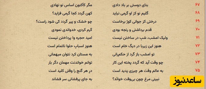 شاعر با استفاده از معانی عمیق و تشبیهات زیبا، به نوعی از دل درد و رنجهای خود و جامعه پرده برداشته و نشان میدهد که با وجود سختیها و مشکلات، امید به آینده خوب و تدبیر پادشاه وجود دارد. او همچنین به نقد برخی رفتارهای زشت و ناپسند و بازیهای سیاسی میپردازد و تأکید میکند که برای هر چیزی در زمان مناسب خود باید اقدام کرد. در نهایت، شاعر خواستار محبت و دوستی و پشتیبانی از یکدیگر در این سفر زندگی است.