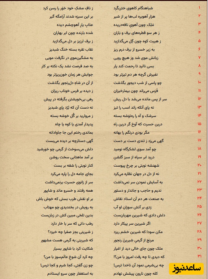 به گزارش سرویس مجله خانواده سرویس ساعدنیوز، "خسرو و شیرین" یکی از محبوب ترین داستان های عاشقانه ی ایرانی است که "نظامی گنجوی" آن را در قالب نظم سروده است. روایت با تولد و پرورش خسرو پرویز ، فرمانروای معروف ساسانی آغاز می شود.