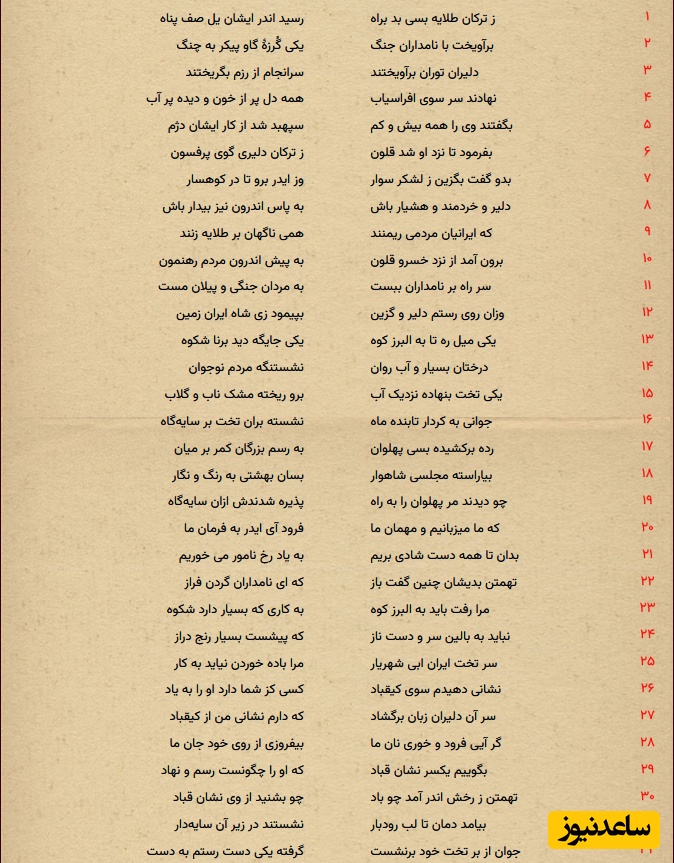 به گزارش سرویس فرهنگ و هنر سرویس ساعدنیوز، یکی از بزرگترین حماسههای منظوم جهان، کتاب شاهنامه فردوسی، اثر ابوالقاسم فردوسی است. این اثر شامل حدود 50,000 تا 61,000 بیت است و به اساطیر، حماسهها و تاریخ ایران از آغاز، تا حملهی اعراب میپردازد. شاهنامه در سه بخش اسطورهای، پهلوانی و تاریخی نگاشته شده و تأثیر عمیقی بر فرهنگ و ادبیات کهن فارسی داشته است. این کتاب به بسیاری از زبانهای زندهی جهان نیز ترجمه شده است.