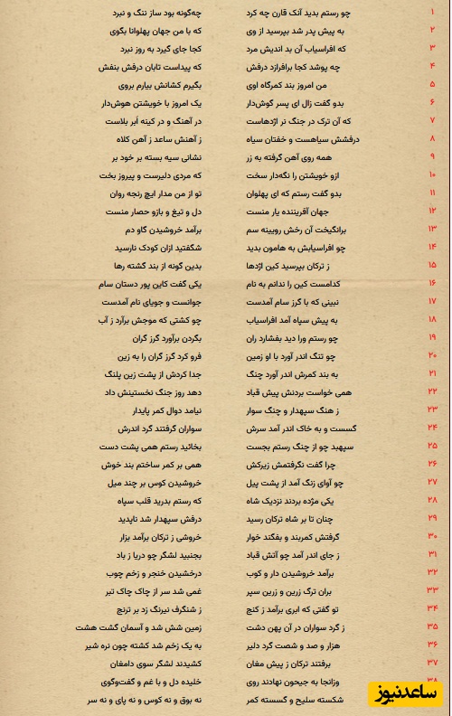به گزارش سرویس فرهنگ و هنر سرویس ساعدنیوز، یکی از بزرگترین حماسههای منظوم جهان، کتاب شاهنامه فردوسی، اثر ابوالقاسم فردوسی است. این اثر شامل حدود 50,000 تا 61,000 بیت است و به اساطیر، حماسهها و تاریخ ایران از آغاز، تا حملهی اعراب میپردازد. شاهنامه در سه بخش اسطورهای، پهلوانی و تاریخی نگاشته شده و تأثیر عمیقی بر فرهنگ و ادبیات کهن فارسی داشته است. این کتاب به بسیاری از زبانهای زندهی جهان نیز ترجمه شده است.