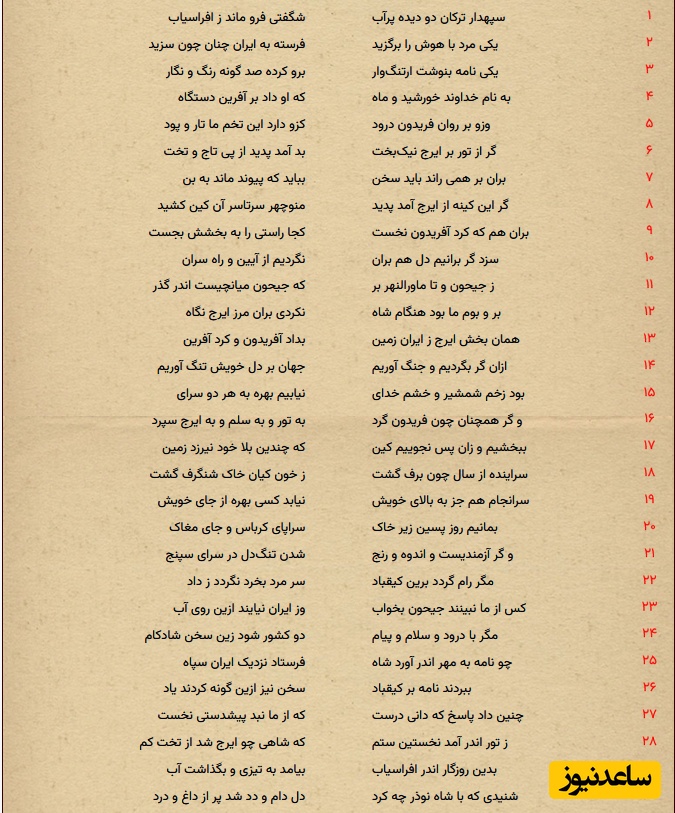 به گزارش سرویس فرهنگ و هنر سرویس ساعدنیوز، یکی از بزرگترین حماسههای منظوم جهان، کتاب شاهنامه فردوسی، اثر ابوالقاسم فردوسی است. این اثر شامل حدود 50,000 تا 61,000 بیت است و به اساطیر، حماسهها و تاریخ ایران از آغاز، تا حملهی اعراب میپردازد. شاهنامه در سه بخش اسطورهای، پهلوانی و تاریخی نگاشته شده و تأثیر عمیقی بر فرهنگ و ادبیات کهن فارسی داشته است. این کتاب به بسیاری از زبانهای زندهی جهان نیز ترجمه شده است.