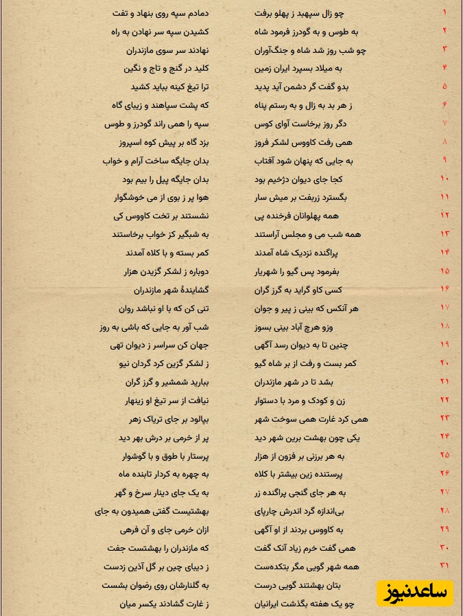 به گزارش سرویس فرهنگ و هنر سرویس ساعدنیوز، یکی از بزرگترین حماسههای منظوم جهان، کتاب شاهنامه فردوسی، اثر ابوالقاسم فردوسی است. این اثر شامل حدود 50,000 تا 61,000 بیت است و به اساطیر، حماسهها و تاریخ ایران از آغاز، تا حملهی اعراب میپردازد. شاهنامه در سه بخش اسطورهای، پهلوانی و تاریخی نگاشته شده و تأثیر عمیقی بر فرهنگ و ادبیات کهن فارسی داشته است. این کتاب به بسیاری از زبانهای زندهی جهان نیز ترجمه شده است.