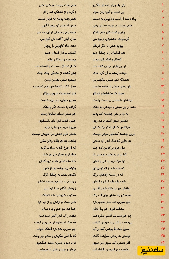 به گزارش سرویس فرهنگ و هنر ساعدنیوز، یکی از بزرگترین حماسههای منظوم جهان، کتاب شاهنامه فردوسی، اثر ابوالقاسم فردوسی است. این اثر شامل حدود 50,000 تا 61,000 بیت است و به اساطیر، حماسهها و تاریخ ایران از آغاز، تا حملهی اعراب میپردازد. شاهنامه در سه بخش اسطورهای، پهلوانی و تاریخی نگاشته شده و تأثیر عمیقی بر فرهنگ و ادبیات کهن فارسی داشته است. این کتاب به بسیاری از زبانهای زندهی جهان نیز ترجمه شده است.