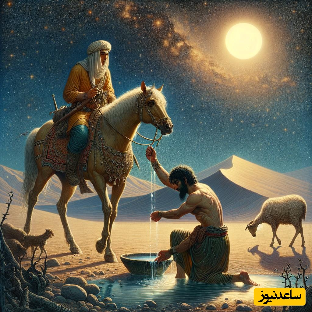 رستم به خاطر گرما و تشنگی از اسب خود پیاده شد و به دنبال راهی برای رهایی از این وضعیت افتاد. او به آسمان نگاه کرد و از دادگر خواست که اگر رنج او مورد رضای اوست، گنجهایی در جهان دیگر به او عطا کند تا بتواند ایرانیان و شاه کاووس را از چنگال دیو نجات دهد. رستم از شدت تشنگی بیحال شد و بر زمین افتاد. در همان لحظه، متوجه یک میش شد که بر روی زمین قدم میزد. او اندیشید که شاید این میش به چشمهای برای نوشیدن آب نزدیک باشد. به دنبال میش روان شد و به چشمه رسید. رستم از خداوند به خاطر این هدایت سپاسگزاری کرد. بعد از سیراب شدن از آب چشمه، رستم لباس خود را شست و آراسته شد. سپس به شکار رفت و یکی از گورهای صحرا را شکار کرد. او پوست گور را جدا کرد و با روشن کردن آتش گوشت آن را پخت. پس از خوردن غذا، استخوانهای باقیمانده را دفن کرد و به چشمه برگشت تا آبی بنوشد و بعد به خواب رود. رستم به رخش، اسبش، سفارش کرد که با هیچکس درگیر نشود و اگر دشمنی رسید، فوری او را بیدار کند و خودش به جنگ با دیو و شیران نپردازد. بعد رستم خوابید و رخش تا نیمهشب چرانید و چمید.