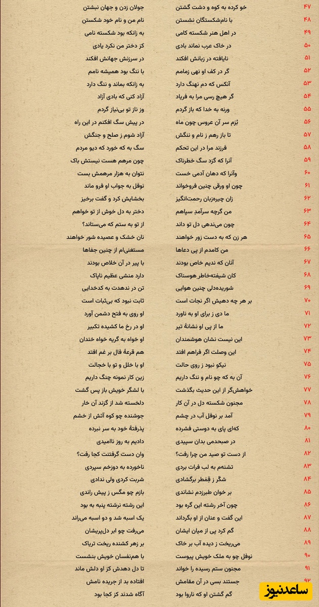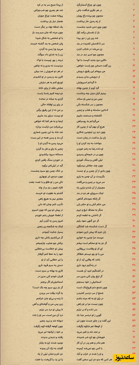 به گزارش سرویس فرهنگ و هنر ساعدنیوز، "لیلی و مجنون" نام مجموعه شعری از نظامی گنجوی، شاعر ایرانی است. این مجموعه سومین مثنوی از مجموعه مثنویهایی است که به خمسه نظامی معروفاند.