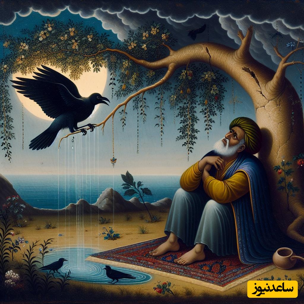 مجنون در روزی گرم و آفتابی در سایه درختی نشسته بود و از آبی که در حوالی آن درخت جمع شده بود، سیراب شد. او خسته از دویدن و گفتگو کردن و شنیده نشدن، اندکی استراحت کرد. در این حال، پرندهای سیاه مانند زاغ روی شاخه درخت نشسته بود. مجنون از دیدن آن زاغ به فکر فرو رفت و با دل خویش احساس نزدیکی کرد. او با زاغ شروع به سخن گفتن کرد و از حال و روز خود برایش گفت. مجنون داستان دلی سوخته و پراحساس را برای زاغ بیان کرد و از او خواست که اگر نزد یارش رسید، احوالش را بپرسد و از بیکسیاش بگوید. زاغ حرفهای مجنون را شنید اما در نهایت رفت و داغی بر دل مجنون گذاشت. با فرارسیدن شب، مجنون همچنان در اندیشه سخنانش به زاغ بود و اشک میریخت، همچنان که شمعی سوزان جریان داشت.