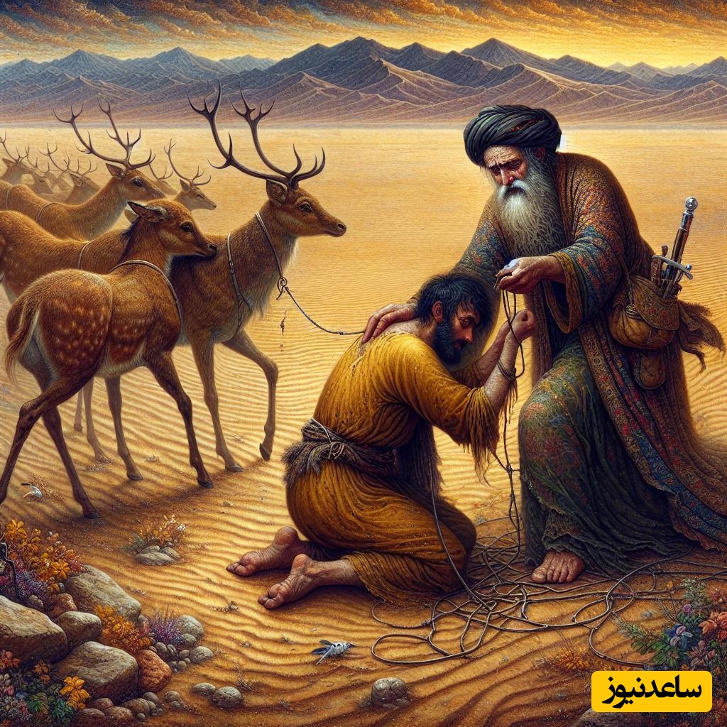 مجنون که در بیابان سرگردان بود و دل از نوفلیان بریده بود، در راه به دام افتادن چند آهو برخورد. شکارچی درصدد بود آهوان را بکشد و از آنها بهره ببرد. مجنون به نزد شکارچی رفت و خواهش کرد که آهوان را آزاد کند و از زیبایی و معصومیت آنها سخن گفت و سعی کرد دل شکارچی را نرم کند. شکارچی گفت که به سبب فقر و نیاز به این شکار نیاز دارد، اما مجنون به او پیشنهاد داد که اسب خود را به او بدهد و به جای آن، آهوان را آزاد کند. شکارچی پذیرفت و مجنون آهوان را آزاد کرد و با عشق و محبت آنها را نوازش کرد. در ادامه، مجنون با شور و شوق در بیابان به دنبال عشق خود سرگردان بود و باز به دام دیگری رسید که گوزنی در آن گرفتار شده بود. بازهم با شکارچی صحبت کرد و او را راضی کرد که گوزن را آزاد کند. این بار مجنون همه وسایل و ابزار خود را به شکارچی داد تا گوزن را آزاد کند. او گوزن را نوازش کرد و با او سخن گفت و با چشمان اشکبار او را آزاد کرد. مجنون همچنان در بیابان به راه خود ادامه داد و در پی راز و نیاز با طبیعت و حیوانات پیش رفت.