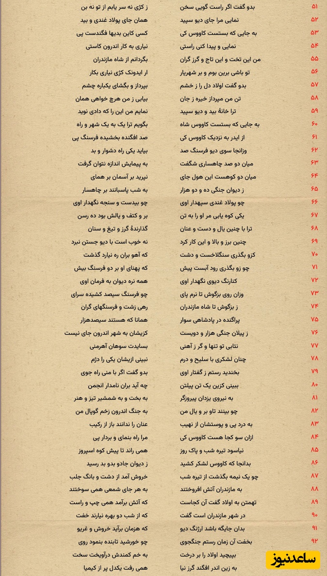 به گزارش سرویس فرهنگ و هنر ساعدنیوز، یکی از بزرگترین حماسههای منظوم جهان، کتاب شاهنامه فردوسی، اثر ابوالقاسم فردوسی است. این اثر شامل حدود 50,000 تا 61,000 بیت است و به اساطیر، حماسهها و تاریخ ایران از آغاز، تا حملهی اعراب میپردازد. شاهنامه در سه بخش اسطورهای، پهلوانی و تاریخی نگاشته شده و تأثیر عمیقی بر فرهنگ و ادبیات کهن فارسی داشته است. این کتاب به بسیاری از زبانهای زندهی جهان نیز ترجمه شده است.