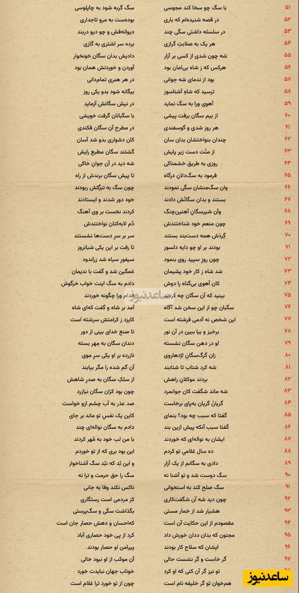 صاحب خبر داستانی از مجنون روایت میکند که پس از مرگ پدرش به کوه و دشت پناه برد و روزی از کنار دیار لیلی عبور کرد و نام او و لیلی را حک شده بر سنگ دید. ناخنی بر سنگ کشید و یکی از نامها را پاک کرد، زیرا معتقد بود که او و لیلی یکی هستند. مجنون از جذام و رفت و آمد مردم به کناری زندگی کرد و تنها در کوه و دشت با حیوانات وحشی خو گرفت. حیوانات به او نزدیک شدند و مجنون چنان بین آنها مقامی یافت که مانند سلیمان نبی بر آنها حکومت میکرد. حیوانات بیابان همراه او گشتند و در برابر او کرنش کردند. او نیکوکار بود و آنچه داشت با حیوانات تقسیم میکرد، تا جایی که هرکسی در مسیرش به او خوراک میآورد و مجنون این خوراک را با حیوانات شریک میشد. در این میان داستانی دیگر از پادشاهی در مرو نقل میشود که سگهای وحشی را برای عذاب افراد مخالف خود به کار میگرفت. یکی از جوانان دربار از ترس این سگهای وحشی به آنها خوراکی میداد تا مهربان شوند و در روزی که پادشاه خواست او را به سگها بسپارد، آنان به خاطر محبتهای گذشته با او مهربان بودند و به او آسیبی نرساندند. پادشاه وقتی این را دید، از کرده خود پشیمان شد و محبتهای جوان را دریافت کرد و از او عذر خواست. این داستانها نشان میدهند که احسان و مهربانی حتی بر وحشیترین موجودات تأثیر دارد و میتواند به نوعی محافظ در برابر خطرات باشد.