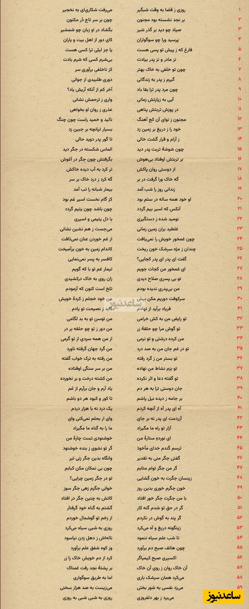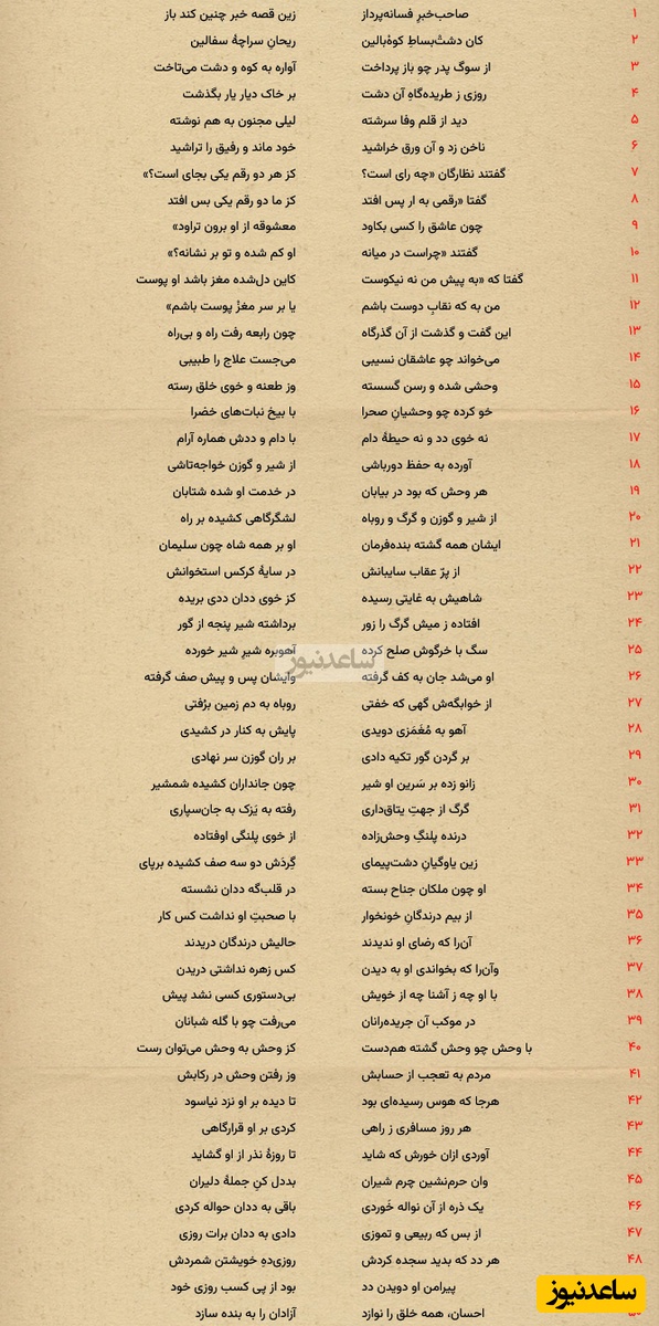 به گزارش سرویس فرهنگ و هنر ساعدنیوز، "لیلی و مجنون" نام مجموعه شعری از نظامی گنجوی، شاعر ایرانی است. این مجموعه سومین مثنوی از مجموعه مثنویهایی است که به خمسه نظامی معروفاند.