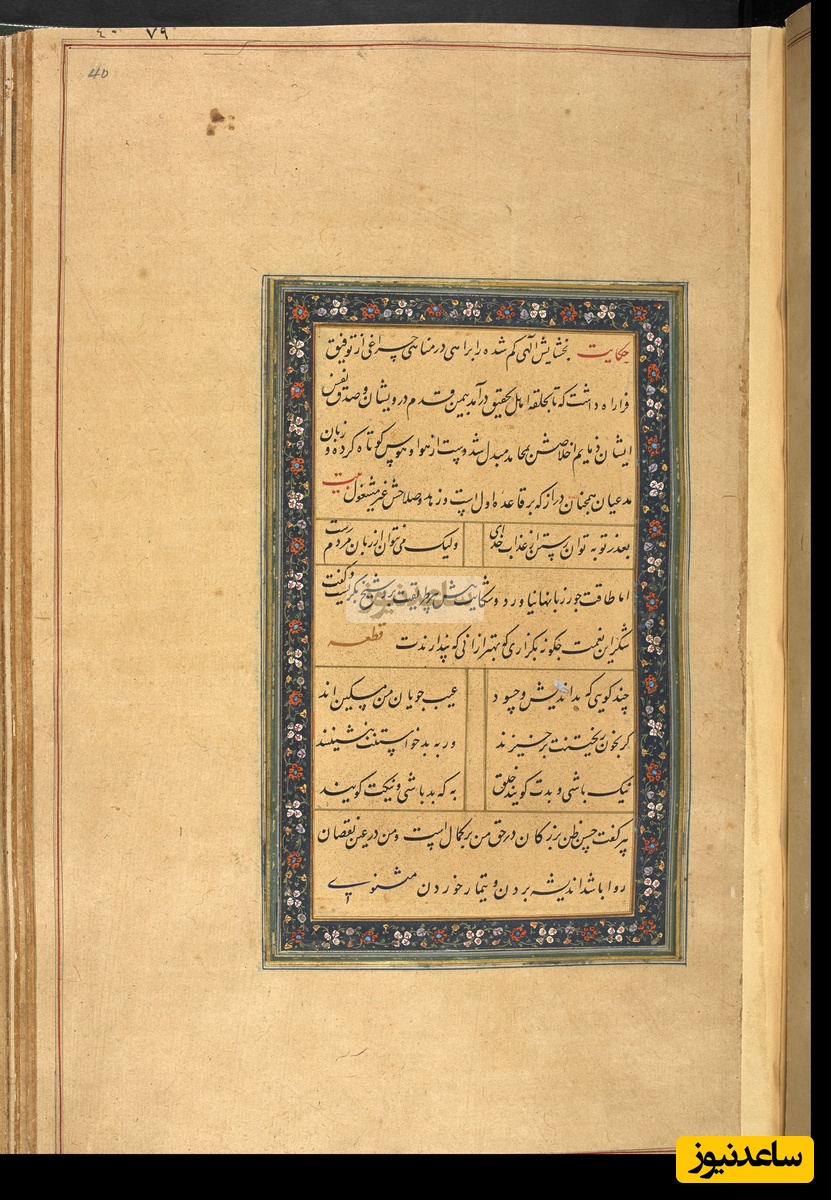 گلستان سعدی به خط کاتب سلطانی میر علی حسینی به سال 975 هجری قمری در بخارا