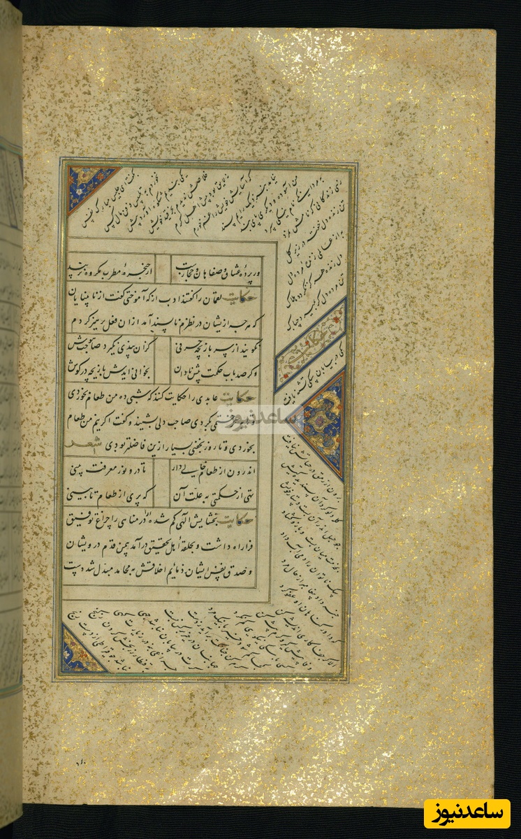 کلیات سعدی مذهب و مصور نسخهبرداری شده توسط عبدالله بن شیخ مرشد الکاتب در قرن دهم هجری