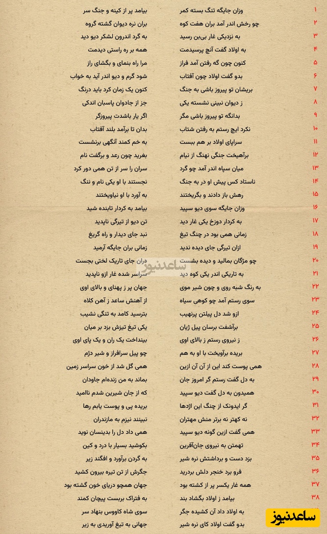 به گزارش سرویس فرهنگ و هنر ساعدنیوز، یکی از بزرگترین حماسههای منظوم جهان، کتاب شاهنامه فردوسی، اثر ابوالقاسم فردوسی است. این اثر شامل حدود 50,000 تا 61,000 بیت است و به اساطیر، حماسهها و تاریخ ایران از آغاز، تا حملهی اعراب میپردازد. شاهنامه در سه بخش اسطورهای، پهلوانی و تاریخی نگاشته شده و تأثیر عمیقی بر فرهنگ و ادبیات کهن فارسی داشته است. این کتاب به بسیاری از زبانهای زندهی جهان نیز ترجمه شده است.