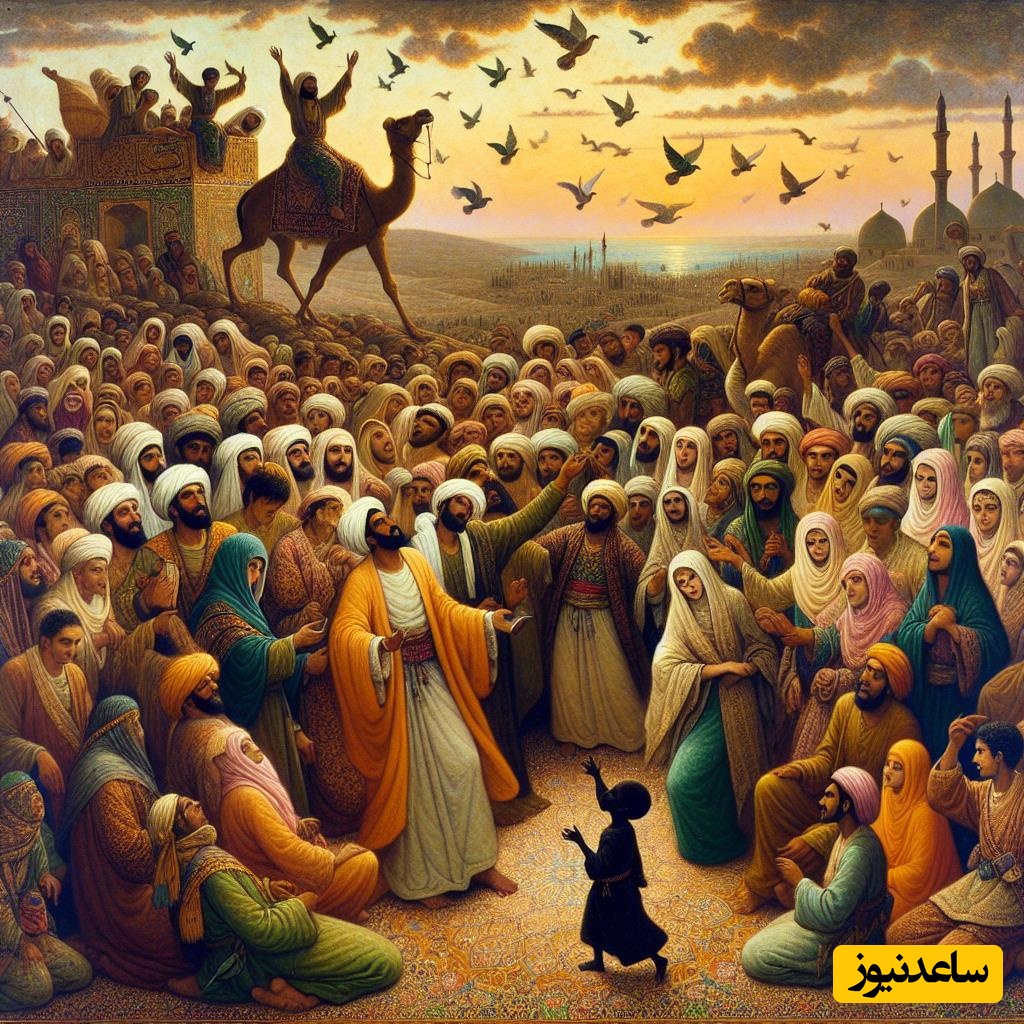 در سفر حجاز، گروهی از جوانانی که دلی پر از عشق داشتند، با من همراه بودند. آنها گهگاه زمزمهای میکردند و بیتی را با دقت میخواندند. در این سفر، یک عابد بود که نسبت به حال درویشان ناآگاه و بیاعتنا بود. تا اینکه به قبیله بنی هلال رسیدیم. در آنجا کودکی سیاهپوست از میان عربها بیرون آمد و آوازی سر داد که مرغها را از هوا به زمین میکشید. من دیدم که شتر عابد به رقص درآمد و عابد را از زمین انداخته و رفت. به عابد گفتم که حتی شتر از این آواز اثر گرفت اما تو هنوز تفاوتی احساس نمیکنی.
