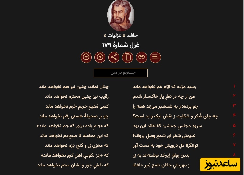 به گزارش سرویس مجله خانواده ساعدنیوز، خواجه شمسالدین محمد شیرازی متخلص به «حافظ» و مشهور به لسانالغیب، غزلسرای بزرگ و از بزرگان شعر و ادب پارسی است. از زندگانی وی همانند دیگر بزرگان و سخنوران کهن ایرانی به رغم شهرت فوقالعادهٔ او اطلاعات دقیقی در دست نیست و حتی در مورد نام دقیق وی (محمد یا شمسالدین) و خاستگاه وی و سالهای عمر او اختلاف نظر وجود دارد. اما بنابر قول مشهور وی حدود سال 726 هجری قمری در شیراز متولد شد. علوم و فنون را در محفل درس استادان زمان فراگرفت و در علوم ادبی عصر پایهای رفیع یافت. خاصه در علوم فقهی و الهی تأمل بسیار کرد و قرآن را با چهارده روایت مختلف از بر داشت. گوته دانشمند بزرگ و شاعر و سخنور مشهور آلمانی دیوان شرقی خود را به نام او و با کسب الهام از افکار وی تدوین کرد. دیوان اشعار او شامل غزلیات، چند قصیده، چند مثنوی، قطعات و رباعیات است. وی به سال 792 هجری قمری در شیراز درگذشت. آرامگاه او در حافظیهٔ شیراز زیارتگاه صاحبنظران و عاشقان شعر و ادب پارسی است.