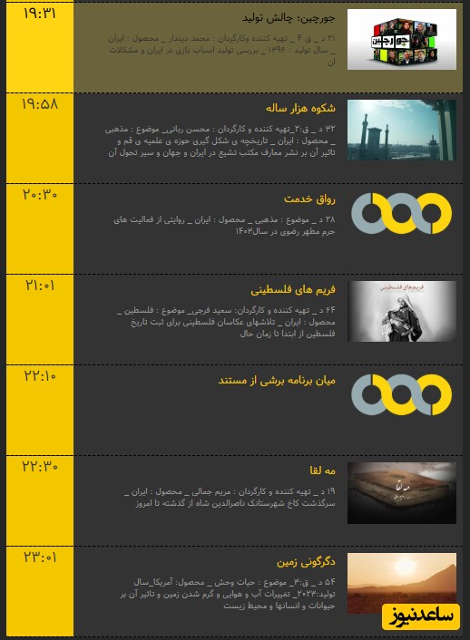 21:00 | اخبار شامگاهی [زنده] [موضوع] اخبار شامگاهی | 00:45:00 |