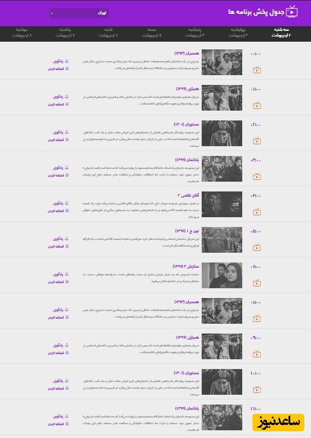20:00 | پایش [زنده] مدت برنامه 45 دقیقه | 00:45:35 |