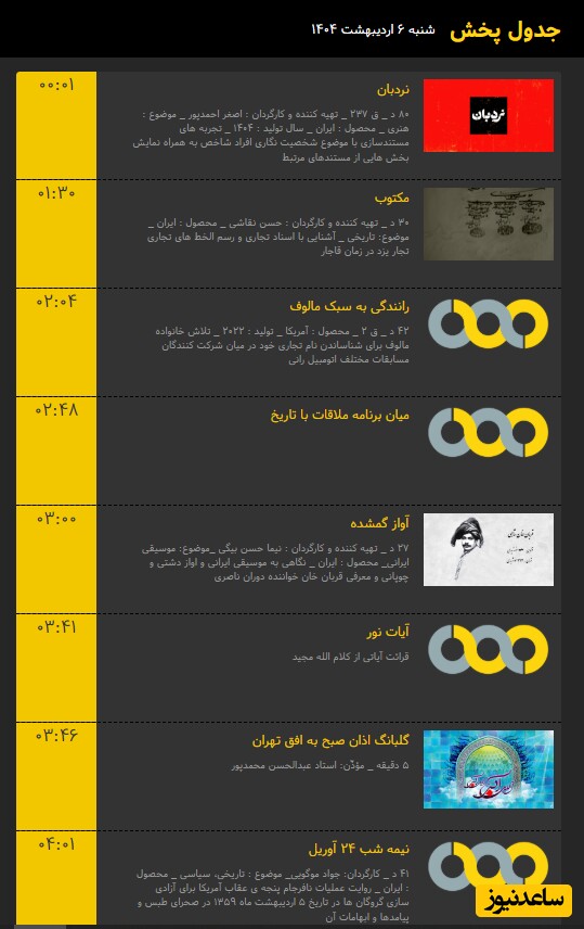 04:38 | پیش پرده روزانه (شنبه) | 00:00:56 |
