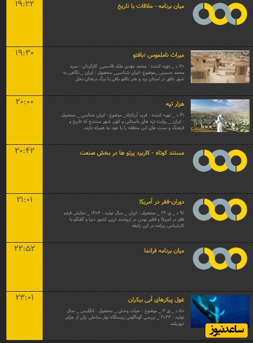 21:00 | اخبار شامگاهی مدت : 45 دقیقه [زنده] [موضوع] اخبار شامگاهی | 00:45:00 |