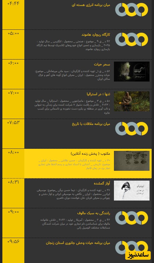 08:00 | اخبار صبحگاهی مدت : 30 دقیقه [زنده] | 00:30:00 |