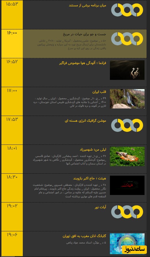 15:59 | اخبار جوانه ها سامانه پیامکی 300002 ,در پیام رسان سروش tv2_irib@ [زنده] | 00:10:00 |
