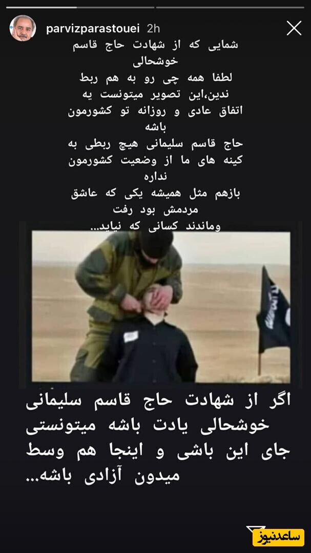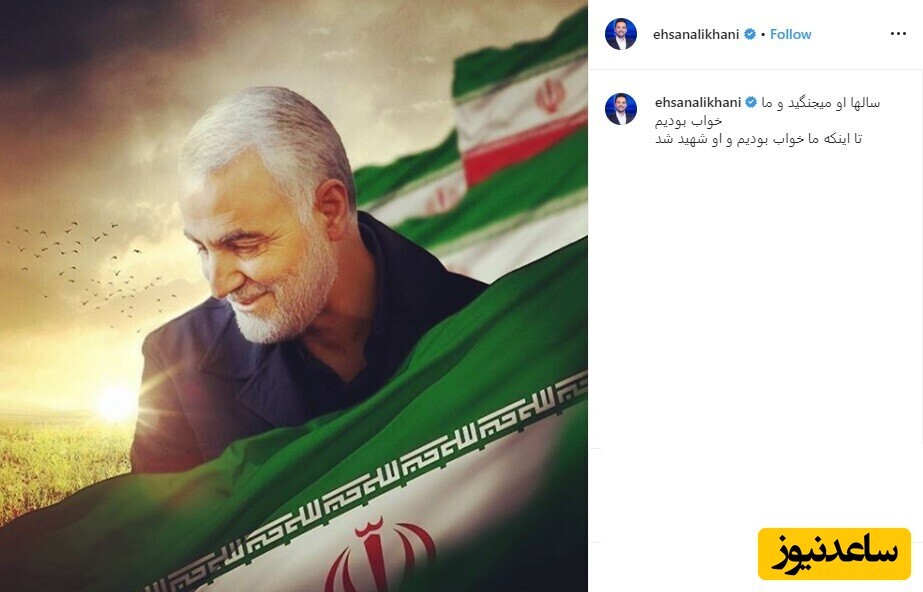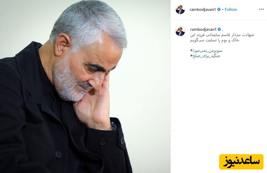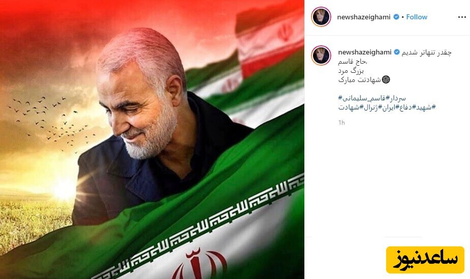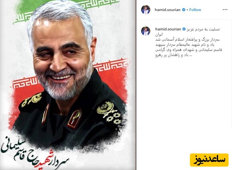 به گزارش سرویس سیاسی ساعدنیوز، سردار حاج قاسم سلیمانی متولد 20 اسفند سال 1335 در شهرستان رابُر از توابع استان کرمان در ایل عشایر سلیمانی و فرمانده سپاه قدس بود. ایشان در دوران جنگ ایران و عراق فرمانده لشکر 41 ثارالله و از فرماندهان عملیاتهای والفجر هشت، کربلای چهار و کربلای پنج بود. حاج قاسم سلیمانی در سال 1379 ش از سوی رهبر معظم انقلاب، به فرماندهی سپاه قدس منصوب شد. پس از ظهور داعش در عراق و سوریه، سردار قاسم سلیمانی به عنوان فرمانده سپاه قدس با حضور در این مناطق و سازماندهی نیروهای مردمی، به مبارزه با این گروه پرداخت. ایشان در سال 1389ش، موفق به أخذ درجه سرلشکری شدند. سردار حاج قاسم سلیمانی بامداد جمعه 13 دی ماه 1398 به شهادت رسید. تصاویری از واکنش هنرمندان و ورزشکاران به شهادت سردار سلیمانی را در ادامه این مطلب میتوانید مشاهده کنید.