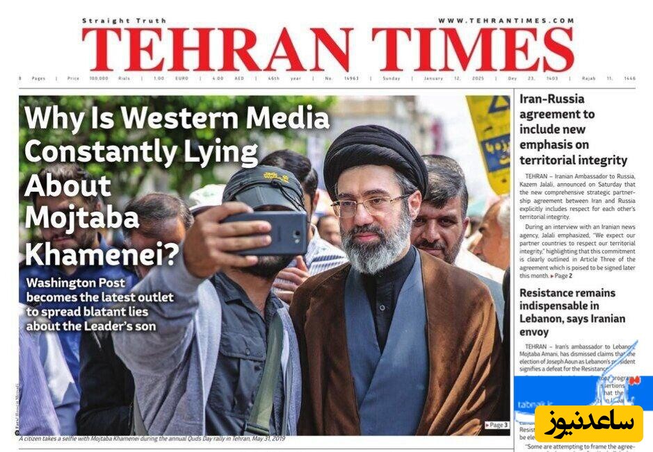 به گزارش سرویس سیاسی ساعدنیوز به نقل از تابناک، روزنامه انگلیسی زبان "تهران تایمز" وابسته به سازمان تبلیغات اسلامی در مطلبی با عنوان" چرا رسانههای غربی دائماً درباره مجتبی خامنهای دروغ میگویند؟ " به بررسی خط خبری رسانه های غربی درباره فرزند رهبر انقلاب پرداخت.
